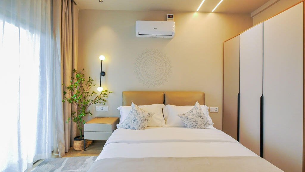 A: Fully furnished and serviced Fully furnished hotel apartment in the heart of the city but in a quiet diplomatic neighborhood.